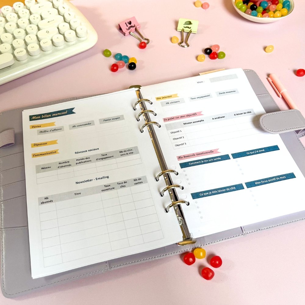Enfin un agenda papier qui reprend intelligemment les rubriques dont j’ai besoin pour mon business.